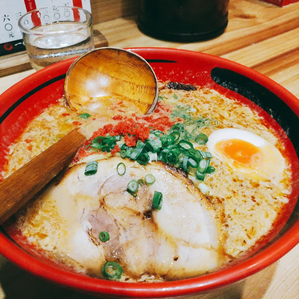 原味只有蝦頭熬製而成的湯頭,隨著加入豚骨湯頭的量又分適量與濃厚,最清淡的是台灣限定的台灣口味。